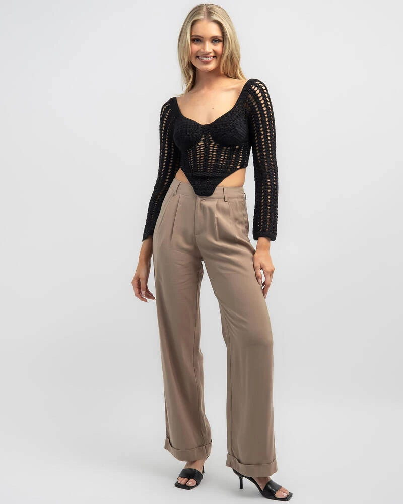 Womens Celine Crochet Corset Long Sleeve Top